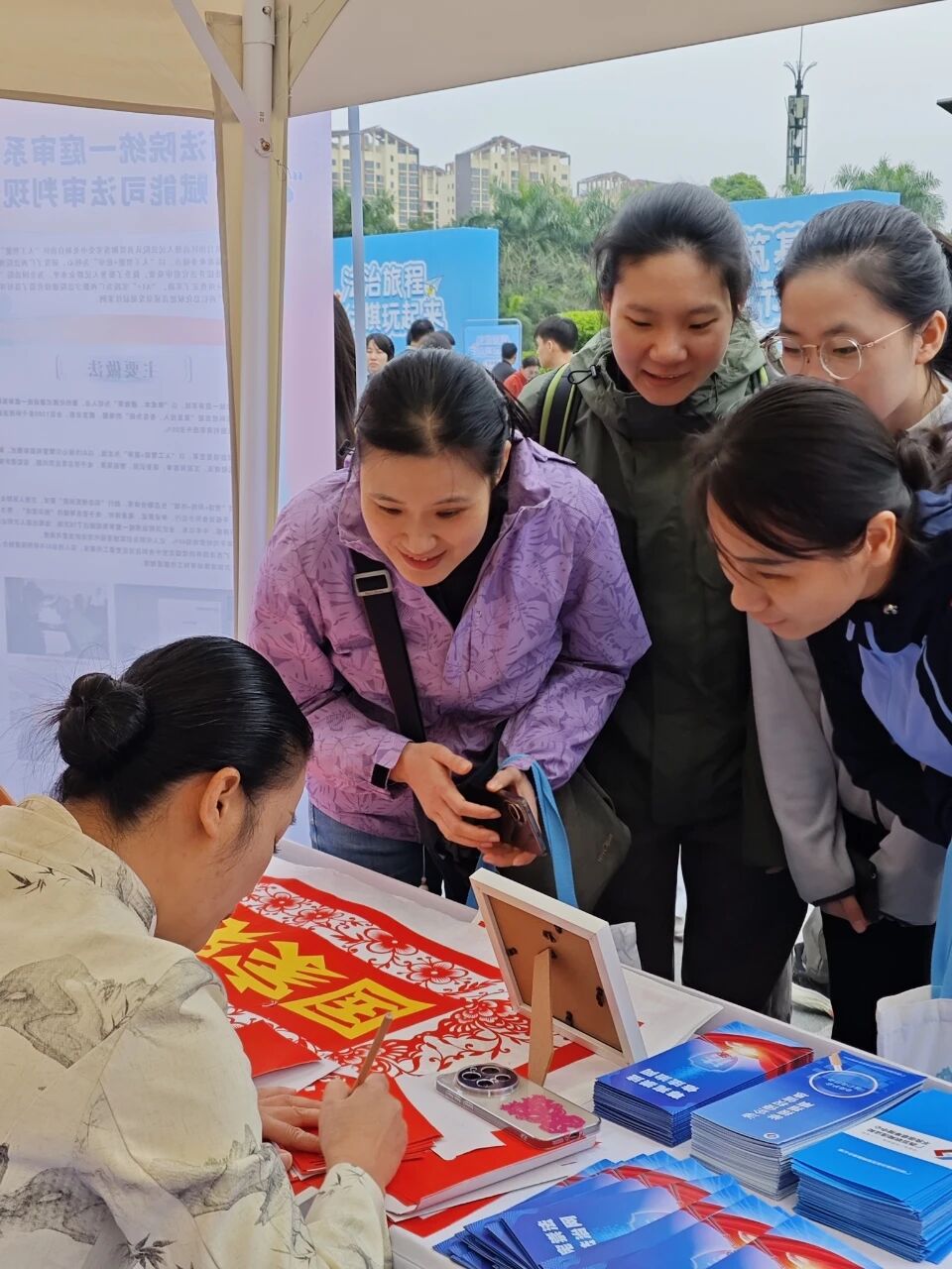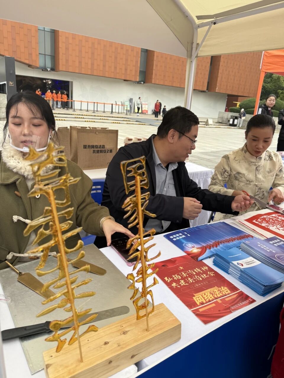 活动现场,一幅幅绘制着“尊宪崇法”“网络法治”“不造谣”“12377”等字样的作品,吸引了众多群众。本次活动趣味十足、宣传方式灵活,潜移默化地让广大群众在近距离感受、体验非遗文化的同时,提高安全用网意识,共同维护网络清朗。