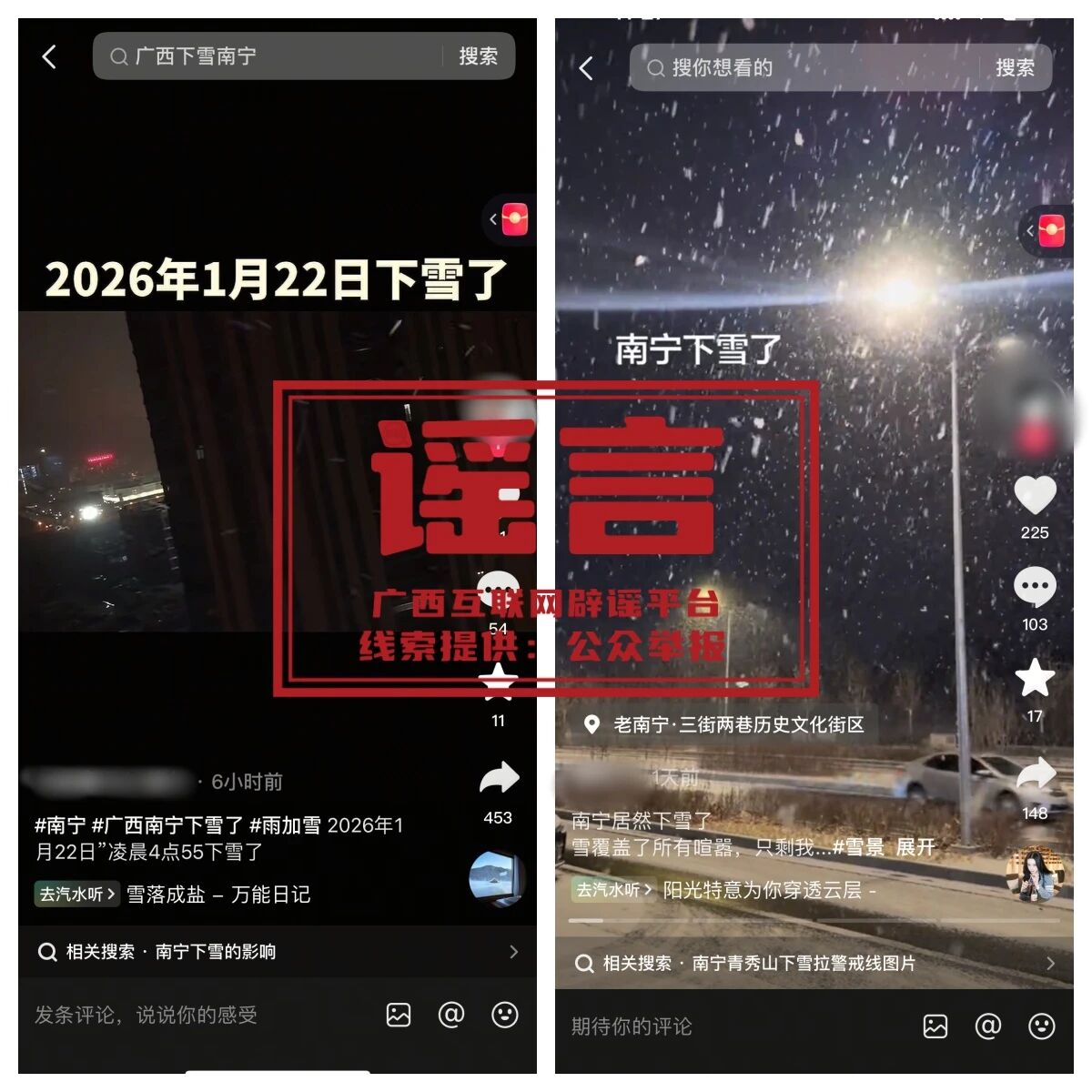 在此,特别提醒广大网民:注意留意广西气象台等官方渠道发布的权威天气预报,合理安排出行计划,把防寒保暖的功课做足。同时,也要牢记,用 AI 技术生成的内容必须进行显著标识,不按规定标注的话可能触犯相关法规。面对网络上那些没经过证实的消息,尤其是那些博人眼球的 “奇观” 类内容,务必多留个心眼,既不要轻信盲从,更不要随手转发扩散,让我们一起携手守护清朗有序的网络家园。