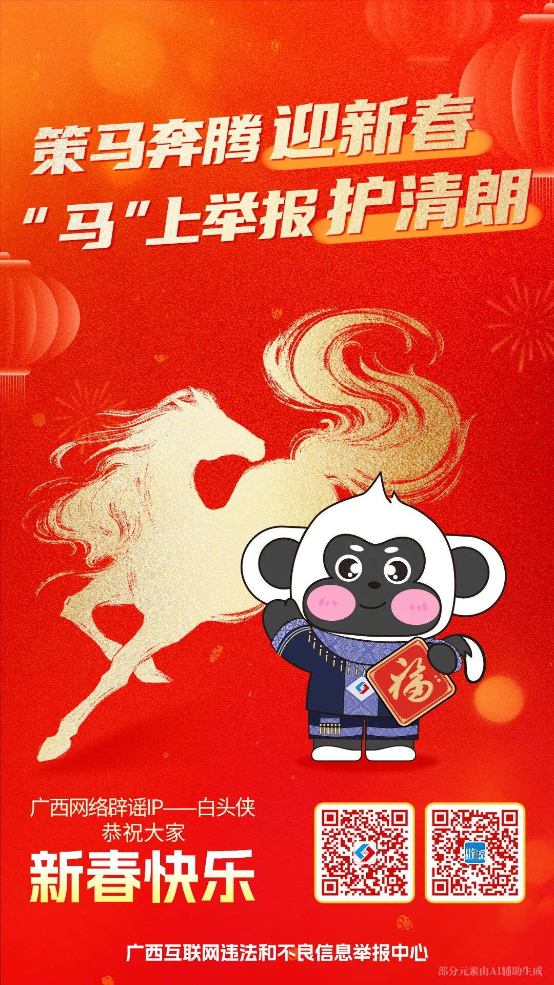 策马奔腾迎新春,“马”上举报护清朗,“白头侠”给您拜年啦!